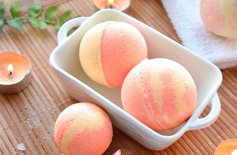 Bath bombs are spherical blends of dry ingredients that fizz and dissolve once they hit warm bathwater. They release nourishing oils, bright colors and scents into your bath. Not only do they offer a sensory experience, they also cleanse the skin.