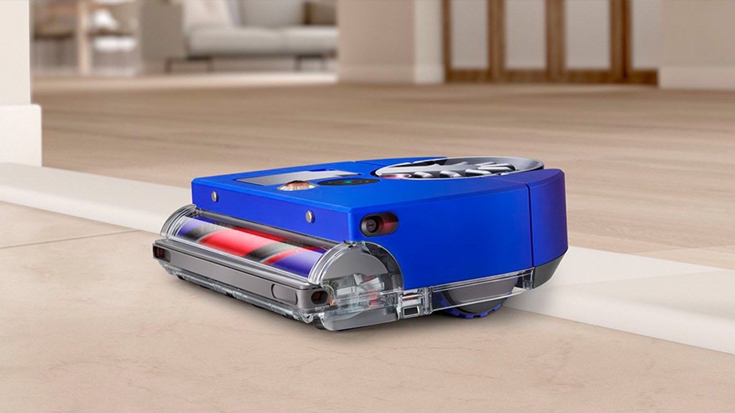 The Dyson 360 Vis Nav has a full-width brush bar, letting it clean right to the edge of rooms — something many robot vacuums struggle with — and its extending side ducts help it clean corners, too. The brush bar is triple-action, too, allowing it to handle all floor types, from hardwood to vinyl to carpets of different pile heights.