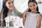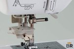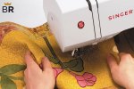 Offers 1,100 stitches per minute and 7 presser feet. Automatically threads needles and sews custom-sized holes for buttons. Drop feed can be adjusted for different tasks. Has a visible bobbin system with upper drop-in.