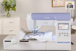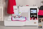 Has 200 built-in stitches, 6 1-step buttonholes, and 175 built-in embroidery designs. A favorite feature among buyers is the monogramming function. Touchscreen panel is considered user-friendly and easy to read. Users can store custom designs on a USB drive and create them on the machine.