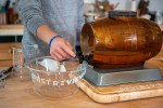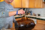 Pour the sugar solution into your clean, sanitized bottling bucket.