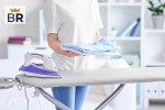 Check the label on the ironing board cover. If it’s machine washable, wash it regularly. Spot-clean an ironing board cover that can’t go in the washing machine.