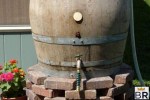 A large collection barrel with two spigots to gather rainwater from your gutter and repurpose it.