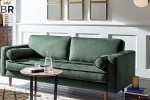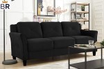 Classic design featuring a high seat back with plush, cushioned pillows. Polyester upholstery repels water and is easy to clean with light soap and a cloth. Hardwood frame with beechwood legs. Durable and affordable. Multiple color options.