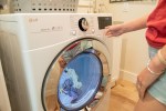 Connect this washer with the ThinQ to get alerts on the progress of the cycle and adjust between the different modes. Lid stays open with the hydraulic hinge, so users can use both hands while loading and unloading baskets. Has short, 15-minute cycles for emergency or light cleaning.