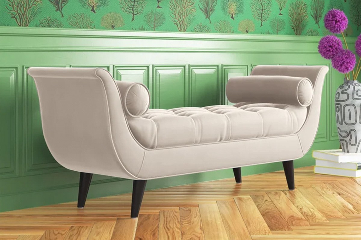 From the entryway to the bedroom, this plush bench will add a touch of glam to any space in your home. Its curved armrests and tufted, upholstered seat give it a high-end look, and it comes in 11 colors to choose from, so you're sure to find one that will perfectly fit your home's design.